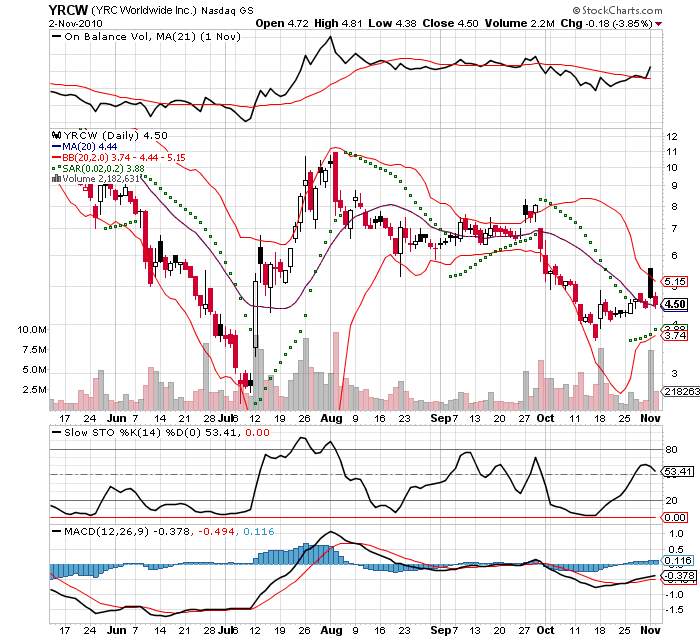 nun steht der teamsters-deal und YRCW wird splitbereinigt auf 18 cent gehandelt, wobei wir bei verkündigung Q. II zahlen schon 45 cent gesehen haben. und die Q. III zahlen (vorabzahlen) waren sicherlich nicht schlecht und das i-tüpfelchen von teamsters-YES gab es obendrauf. also stehen die zeichen grundsätzlich auf grün, nur der pps will nicht.