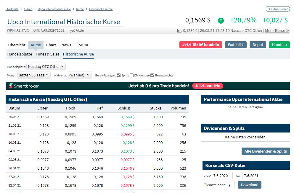 | 163 | UPCO - Beste Kanada-Aktie 2020-2030?! | Maydorn | Maydorn | 21.03.22 08:08 | ||