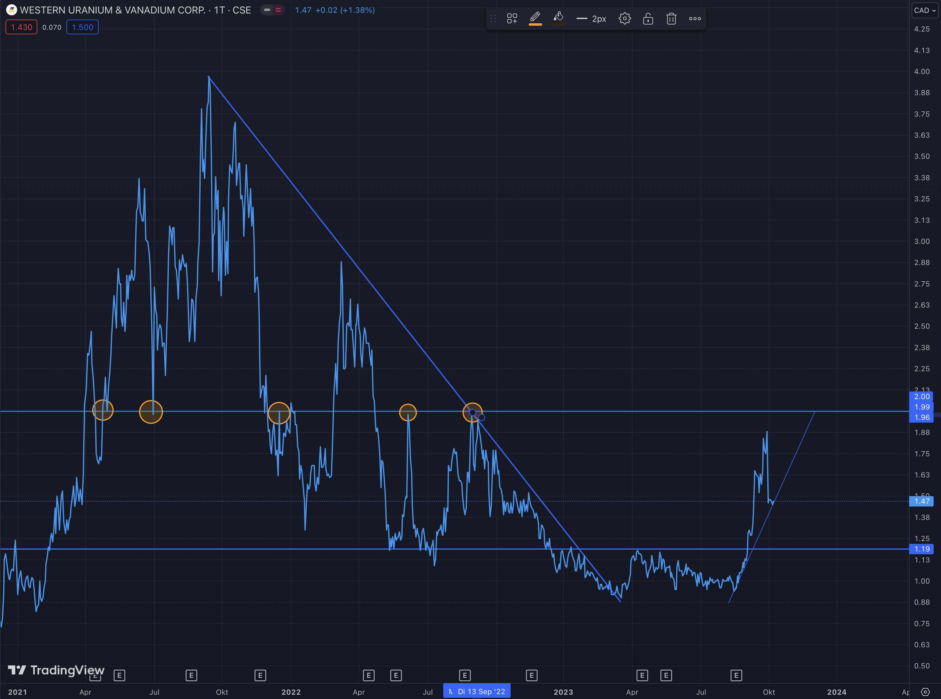 Auch wenn $SUU meine größte Position ist, weil ich denke, dass wir in den kommenden Monaten großartige Bohrnachrichten und eine ETF-Aufnahme erwarten, würde ich sagen, dass $WUC das am stärksten unterbewertete #Uran- und #Vanadiumunternehmen da draußen ist. Das Unternehmen fördert hochgradiges Uran in seiner renovierten Mine, hat eine geringe Aktienanzahl und eine niedrige Verwässerung. Die Urangehalte liegen bei bis zu 3 %, was in den USA fantastisch ist, aber die Vanadiumgehalte sind erstaunlich, etwa das 6-fache der Urangehalte. Sie haben auch #Öl- und #Gas-Lizenzgebühren, die einen großen Teil ihrer regelmäßigen Ausgaben abdecken.Die Marktkapitalisierung etwa 50M $, eine verrückt niedrige Bewertung für die Mine, die sie haben. Und ihre anderen Aktiva, wie das Hansen-Taylor 50 Mlbs Projekt mit der Möglichkeit des ISR-Abbaus, fließen nicht in die Bewertung ein. Ich erwarte einen 10-Bagger und mehr von WUC. Ich denke, ihre Zeit wird kommen, wenn UUUU (Energy Fuels) ihre Mühle in Betrieb nimmt und die Suche nach Erz beginnt. Gibt es außer WUC noch jemanden mit lieferbarem Erz da draußen (in der nähe von Energy Fuels Mühle).