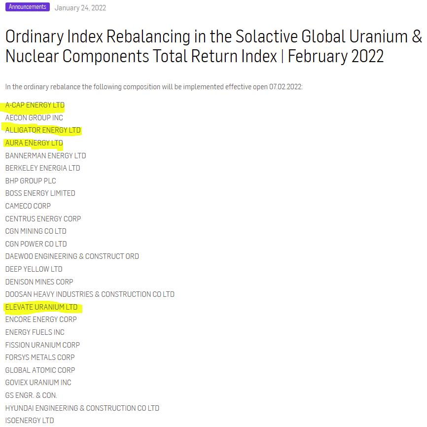 Corey Dias, CEO von Anfield, kommentierte: "2021 begann als herausforderndes Jahr im Uransektor; im Laufe des Jahres gab es jedoch eine positive Bewegung des Rohstoffpreises und der Gesamtstimmung. Darüber hinaus wird die Kernenergie sowohl in Nordamerika als auch in Europa zunehmend als unerlässlich für die Bereitstellung von Grundlaststrom und die Bereitstellung eines kritischen Teils des sauberen Energiemixes angesehen. Kleine modulare Reaktoren (SMRs) der neuen Generation mit kürzeren Durchlaufzeiten und geringerem Kapitalbedarf reduzieren Investitionsengpässe. Darüber hinaus brachte der Markteintritt des Sprott Physical Uranium Trust - nach laufenden Spotmarktkäufen sowohl durch große uranaproduzierende etablierte Unternehmen Cameco als auch Kazatomprom - eine neue Dimension für die strategische Bedeutung des Uran-Spotmarktes und hob die potenzielle Anfälligkeit der Spotmarktabhängigkeit durch Versorgungsunternehmen hervor. Schließlich erinnern die jüngsten Unruhen in Kasachstan und die verschärften Spannungen zwischen Russland und dem Westen als Erinnerung an die Bedeutung stabiler Bergbaugerichtsbarkeiten und gesicherter Uranlieferungen. Angesichts der günstigen Trends sowohl auf dem Uranmarkt als auch im Nuklearsektor und angesichts der zunehmenden Konzentration auf die Angebotsstabilität sind wir zuversichtlich, dass die Uranpreise weiter ansteigen.