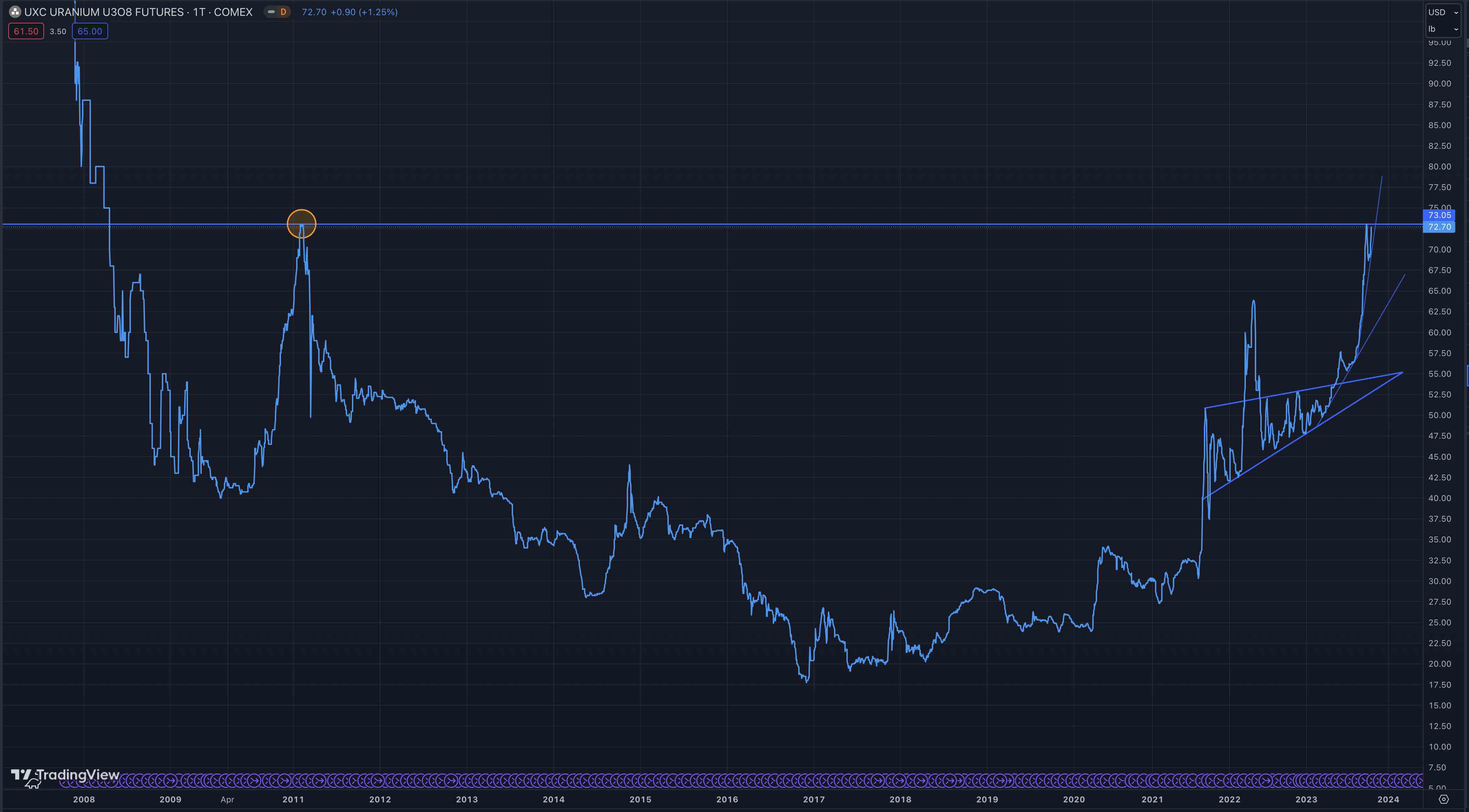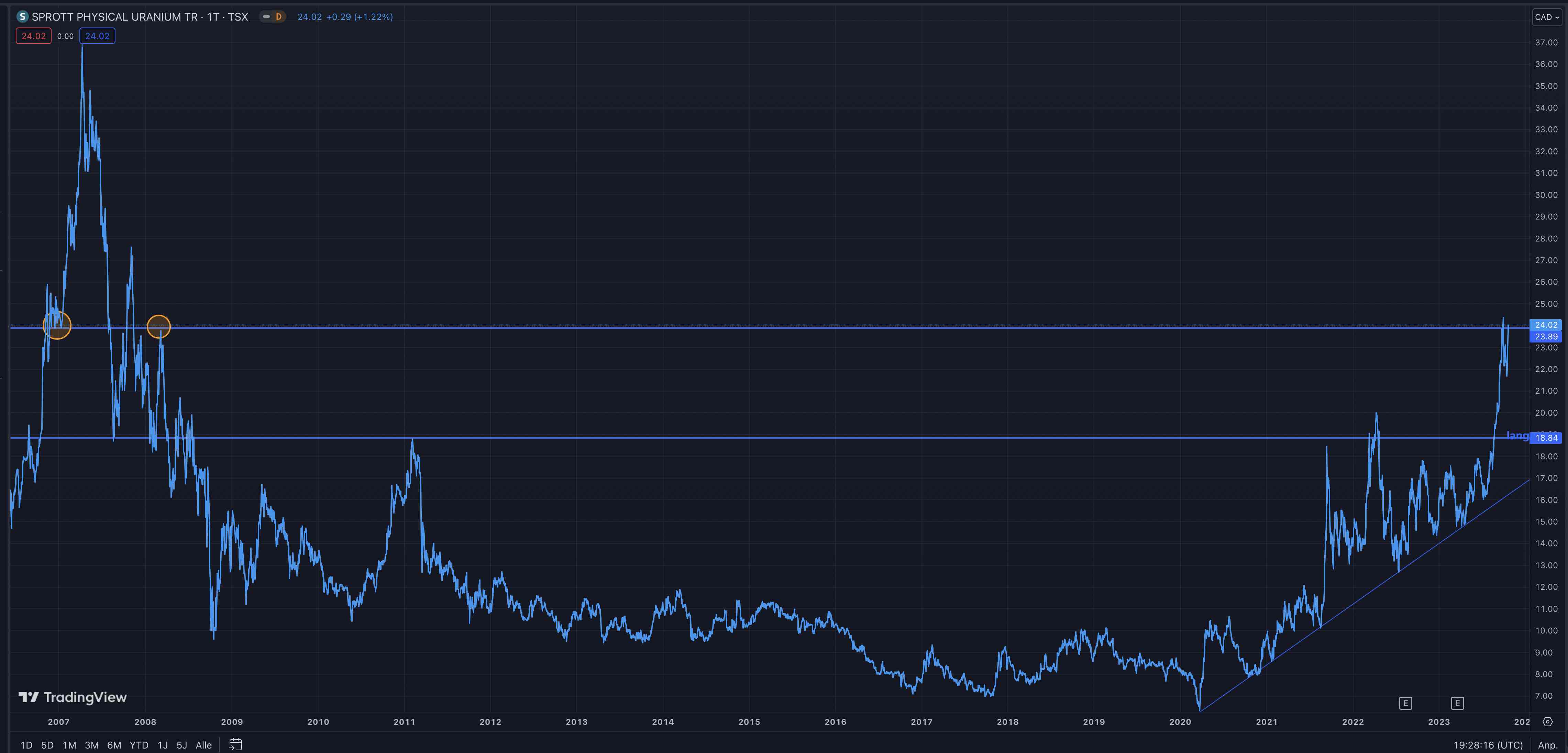 Tja, im aktuellen Marktumfeld hilft selbst der steigende Spotpreis nicht um die Uranwerte zu heben.
