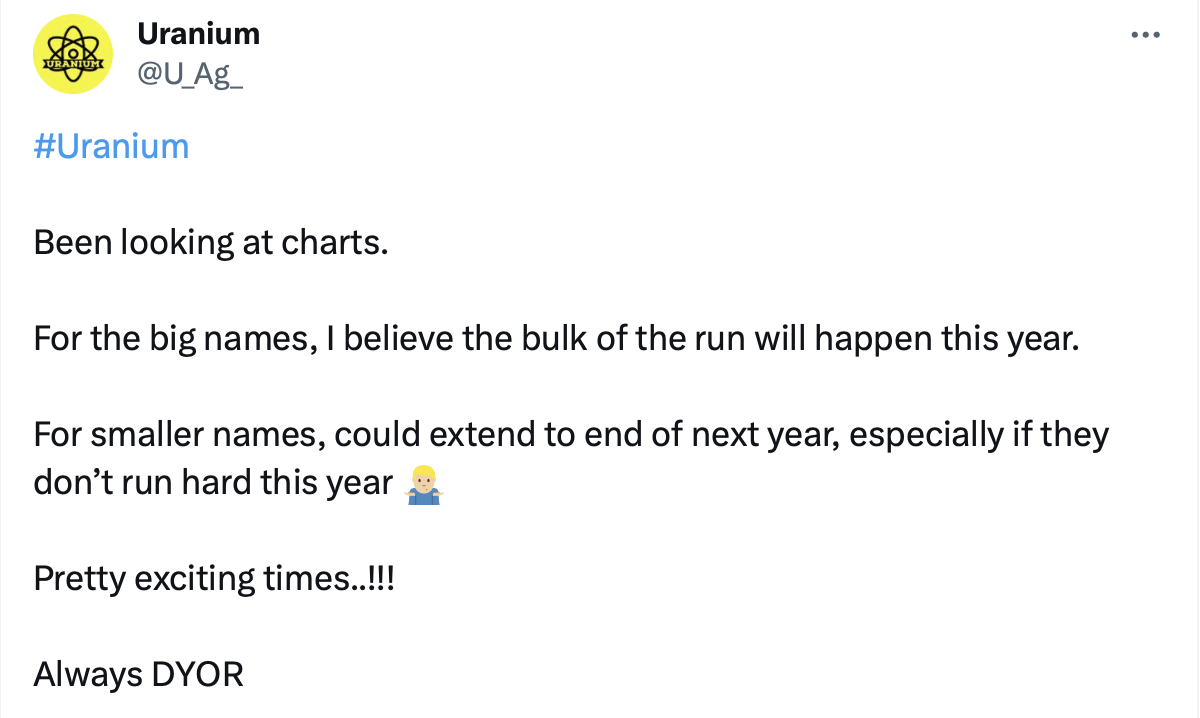 Diese Strategie war richtig! Inzwischen machen meine Uranwerte 1/3 des Depots aus. Bin inzwischen nur noch bei Peninsula Energy und Anfield im Minus.