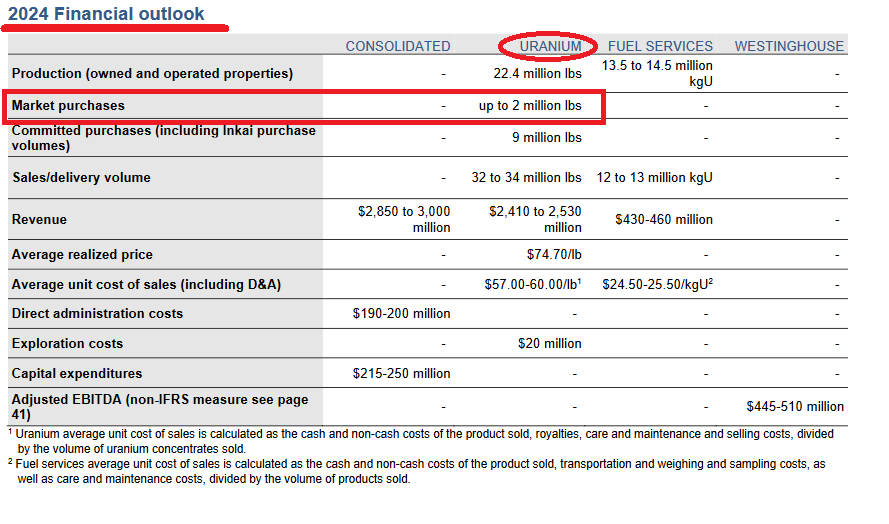 Mines face depletion while legacy long-term deals from the bull market end. Top global producer Kazatomprom’s output cuts remove 25 million lb through 2024. More losses loom with contract expiries. Supply shocks type stories.