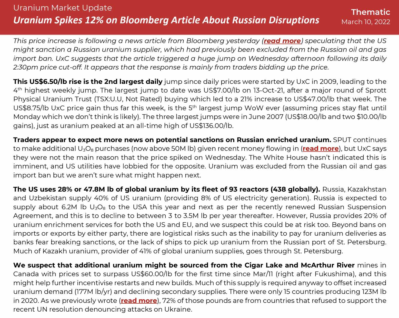 Im Segment mit niedriger angereichertem Uran ("LEU") stieg der Umsatz der getrennten Arbeitseinheit ("SWU") im Jahr 2021 um 11,8 Millionen Dollar auf 163,3 Dollar, was einem Anstieg von 8 % im Vergleich zu 2020 entspricht, während der Uranumsatz um 16,2 Millionen Dollar auf 22,8 Dollar zurückging, was einem Rückgang von 42 % entspricht, was einem Gesamtrückgang des Segments von 2 % oder 4,4 Millionen Dollar auf 186,1 Millionen Dollar entspricht. Ohne eine Inkasso in Höhe von 32,6 Millionen Dollar im Rahmen des Insolvenzverfahrens eines Kunden im Jahr 2020 war der SWU-Umsatz 2021 44,4 Millionen Dollar höher als im Jahr 2020, was einem Anstieg von 37 % entspricht, und das LEU-Segment, einschließlich Uranverkäufen, stieg insgesamt um 28,2 Millionen Dollar oder 18%. Der höhere SWU-Umsatz 2021 wurde durch einen Anstieg des Umsatzvolumens um 64 % angetrieben, teilweise ausgeglichen durch eine Reduzierung des den Kunden in Rechnung gestellten Durchschnittspreises um 16 %.