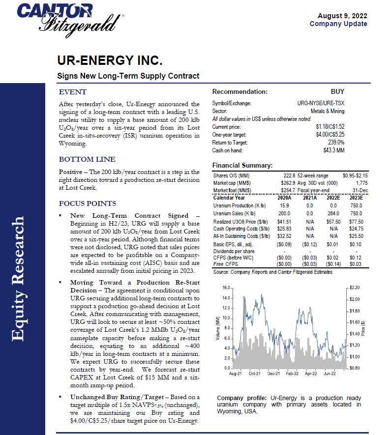 " Energy Fuels also recently received an update from the EPA following a December 2021 ruling that halted receipt of superfund waste at the mill. The ruling will allow the company to once again receive waste from superfund sites.