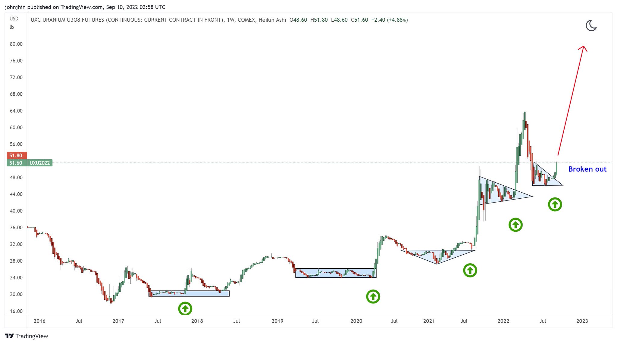 "Uran ist im Aufwind. Einer der Gründe dafür ist, dass man sich in Europa Sorgen um die Gasversorgung macht. Und je näher wir dem Herbst und dem Winter kommen, desto größer wird die Sorge", sagte Jon Maier, Chief Investment Officer bei Global X ETFs, dem US-Nachrichtensender CNBC.
