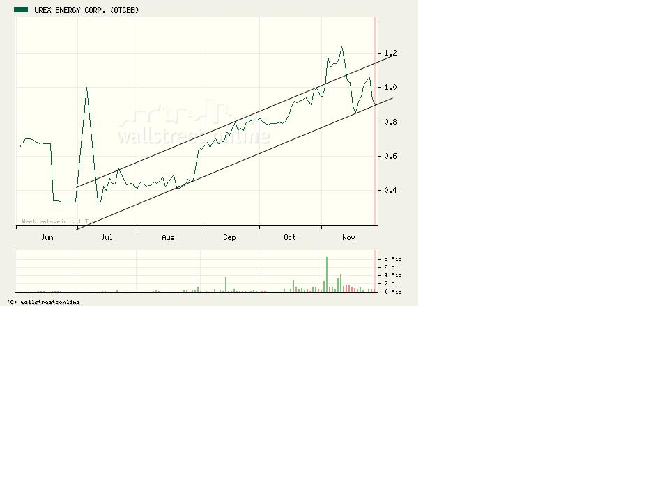 Leser, die die Aktie bei unserer ersten Empfehlung in Ihr Depot nahmen, haben bereits einen Gewinn von über 40% erwirtschaftet, denn wir hatten Urex Energy am 17.10.2006 bei 0,60 Euro empfohlen !