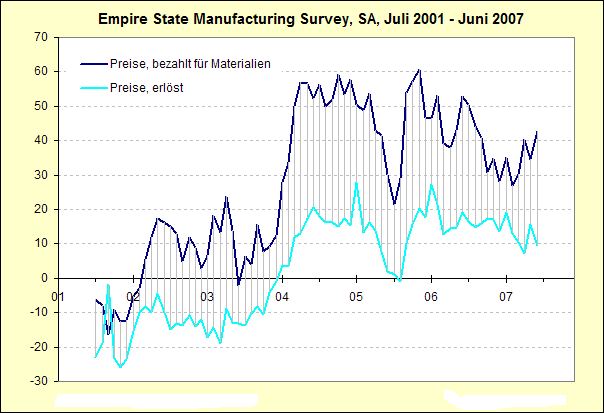 Der New York Empire State Index der New York Fed notiert im Juli bei 26,46. Im Vormonat hatte er noch bei 25,75 gestanden. Erwartet wurde er im Bereich um 18.
