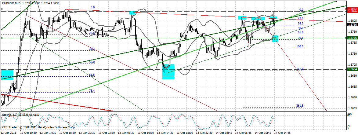 Mein 1. Longtrade bei 1,3805 wurde mit SL bei 1,3783 abgeholt.  Dummerweise hatte ich das kurzfristige 61iger nicht berücksichtigt, dass der kurze Rückfall unter das mBB meinen SL besiegelte. Mein 2. Long eben bei 1,3801 erneut.