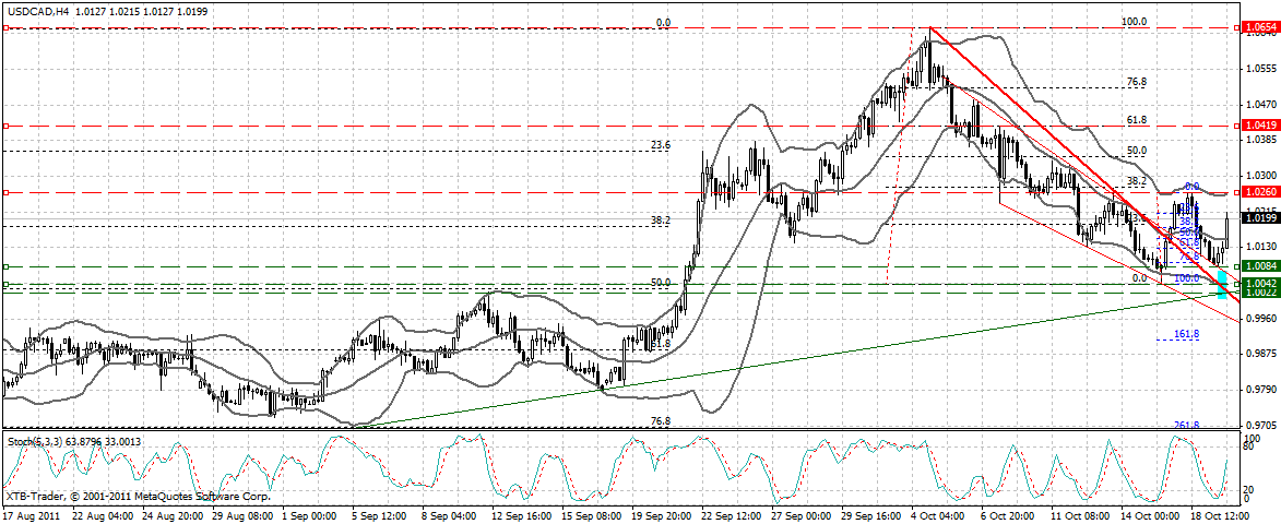 Gestern erfolgte an der unteren Keilbegrenzung das bisheriges Verlaufstief bei 1,0042. Das Maximalziel der bullischen Konso, das 62iger, bei 0,9887 wurde bisher verfehlt.