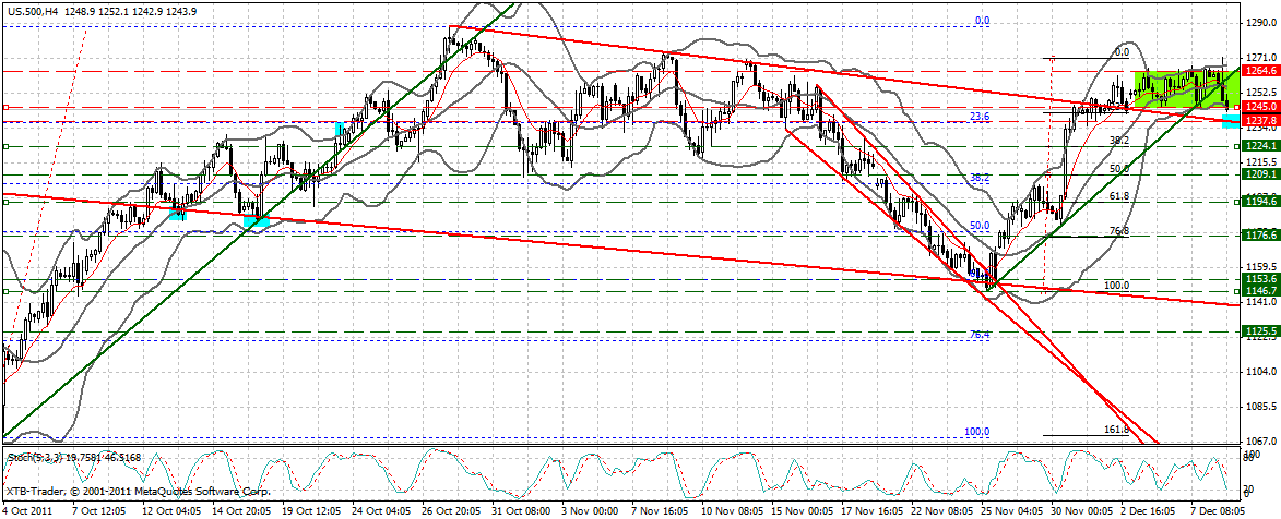 Seit diesem Ausbruch spielt sich das Kursgeschehen in einer Seitwärtsspanne zwischen 1245F-1265 F ab. Heute gab es einen Fehlausbruch darüber. Es kommt aktuell zum Trendbruch des steilen AUT bei 1258 F.
