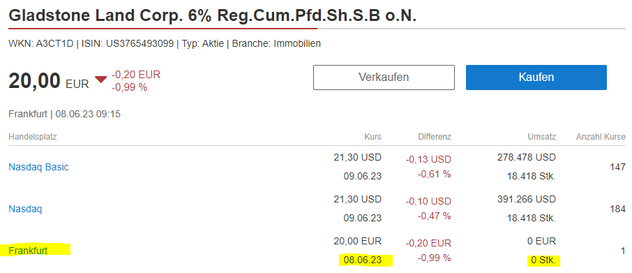 US3765494089 - Gladstone Land Corp (Preferred Shares) - US-Symbol: LANDP