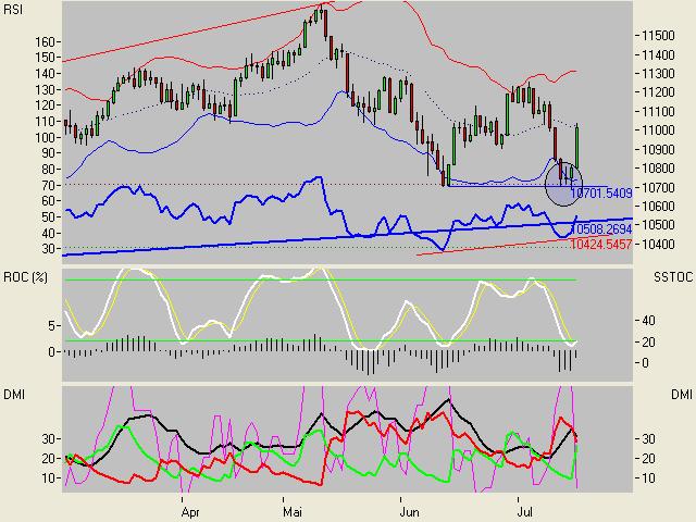 Erst über 11.150 (cash) wirds bullish! Die bluejack-schauer sollten mal einen Blick auf den daily-Bollinger (cash wie auch future) werfen. Da seht Ihr die Marke, an der der DOW im Moment knappert. Schafft er die, dann sehen wir die 11.150. Schafft der DOW auch die (übrigens da einen Blick auf weekly cash und Bollinger werfen *ggg*), dann muß ich die Marken neu berechnen ;-)