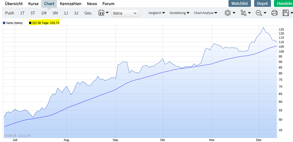 Seit den ersten Gerüchten um Varta und Apple steigen die Aktien des schwäbischen Traditionsunternehmern nicht nur, sie schnellen empor. Vor Jahresfrist kostete eine Varta-Aktie keine 30 Euro, heute muss man mehr als 100 Euro dafür bezahlen. Damit ist Varta im Jahr 2019 Deutschlands heißeste Technologieaktie geworden und zugleich einer der erfolgreichsten Börsengänge der letzten Dekade.......