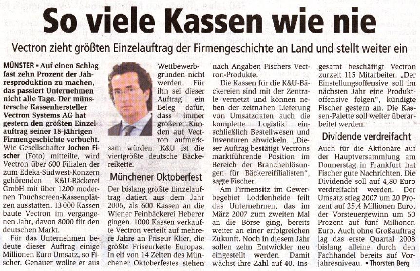 Im bereits abgelaufenen 1. Quartal 2008 hat die Vectron Systems AG an das im