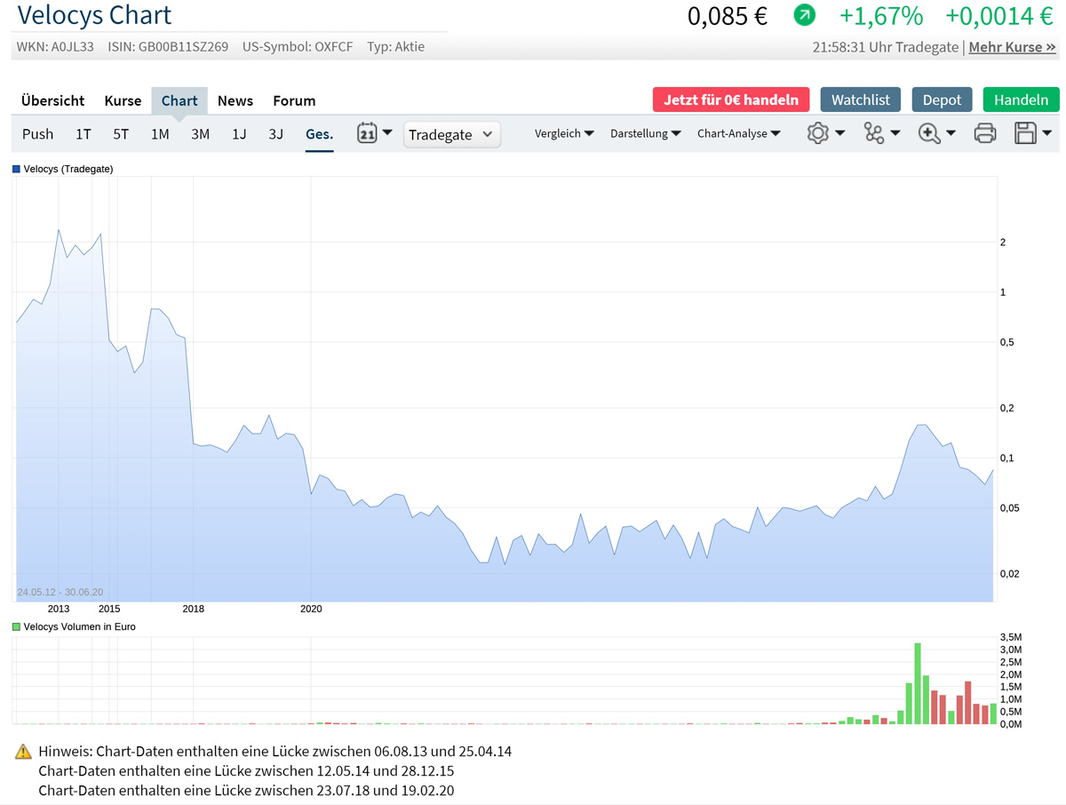 Also kann ich mir gut vorstellen, dass Velocys da etwas hat, was einer Monopolstellung gleich kommt. Denn wer die Patente hat, kann Lizenzgebühren verlangen.