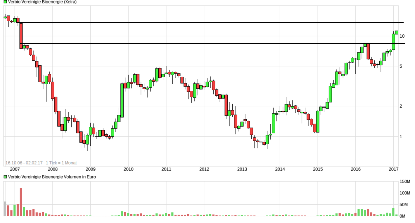 ich bin seit der Verbio-Prognose-Erhöhung vom 12.1.17 Verbio-Aktionär ... und beschäftigte mich in den letzten Tagen mit dem GB2015/16. Dabei erhob sich mir die Frage nach der Stetigkeit der sehr niedrigen Ertragssteuerbelastung die Verbio für die 2 letzten Geschäftsjahre 2014/15 (ca. +2,1 Mio (Erstattung)) und 2015/16 (ca -1,7 Mio) ausweist. Ich bin kein Steuerexperte sodass sich die Seiten 69-71 im GB15/16 für mich 'schwierig' lesen und interpretieren lassen daher von mir die vereinfachende Frage: Können Sie mir sagen wie hoch die steuerlichen Verlustvorträge (Gewerbe- und Körperschaftssteuer) bei Verbio zZ sind?