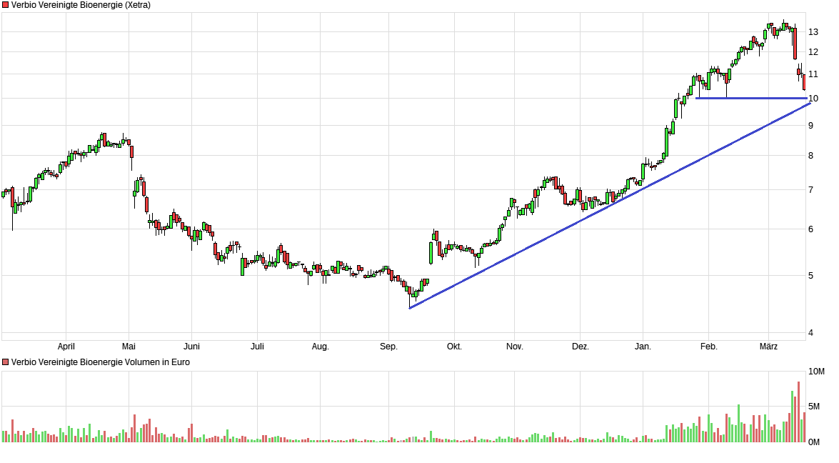 Ich habe leider bei 13,17 € zugegriffen und hoffe, dass sie bald wieder nach oben geht.