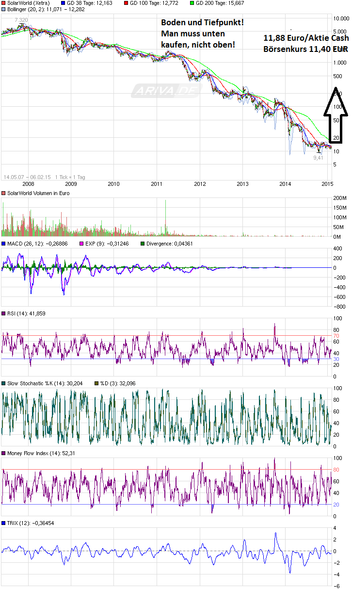 eingesammelt werden konnte.Der PV-Modul Markt wächst rasant, da sollte gefühlt für Solarworld der Schatten des Grauens sich ein wenig aufhellen.Eine Verdreifachung vom ATL ausgehend könnte möglich sein, bei lauer Geschäftslage geht's dann wieder von 30 Punkten auf 20.