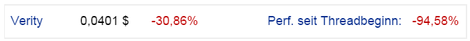 Ich vermute, dass man nichts mehr zu Verity zu lesen bekommt und die in die PLEITE gehen. Bei MINUS 95% ist das doch wohl sonnenklar.