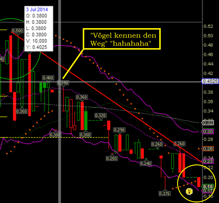 näher an der "Realität", als "unter .20" anzunehmen und .18 anzutreffen, kann man wohl nicht liegen oder? oder wie meintest du das? lol. Sagte damals, dass wir auf den Chart (mehr) bauen, als auf PR-Geschreibsel, du kennst doch das Sprichwort "Papier ist geduldig" "und es brennt auch sehr gut". Was können wir denn dafür, dass die Prognose "negativ" war? Damals, als du es schriebst, stand vrty doppelt so hoch wie heute - ist das absacken um -50% etwa nicht "negativ"? und wie soll man es deiner Meinung nach dann beschreiben? "es wird -50% absacken... aber i frei mi hahaha :-)))" also, davon gibts doch schon genug oder? und hat es was geholfen? nö... also, lieber nahe an der Realität bleiben. Nur, weil du damals nicht gesehen hast, dass der Aufwärtstrend zu Ende ging und der Kurs in einen Abwärtstrend einlenkte, schau wie er vom oberen ins untere Bollingerband wechselt, heißt das eben nicht, dass es nicht legitim sei, eine entsprechende Einschätzung vorzunehmen. m.M. Grüße