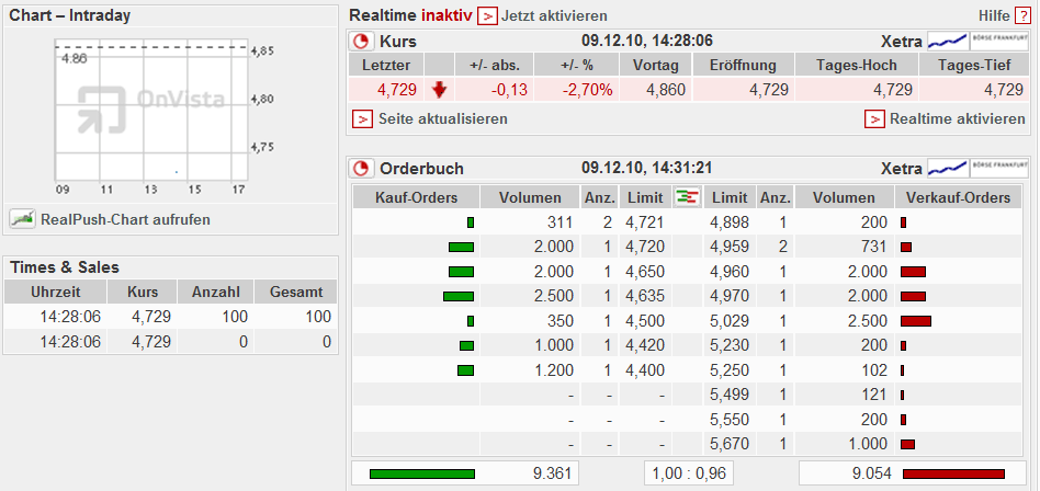 Handelssegment Amtlicher Markt der Frankfurter Wertpapierbörse (Prime Standard)
