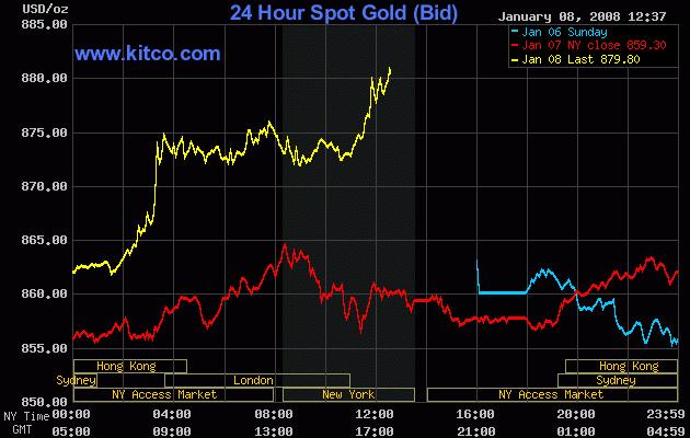 Der Goldpreis nimmt Kurs auf die 900-Dollar-Marke. Bereits in der vergangenen Woche hatte der Preis den Schlussrekord vom Januar 1980 geknackt. Nun zeigt er mit 875,80 US- Dollar auch im Handelsverlauf den bisher höchsten Ausschlag nach oben.
