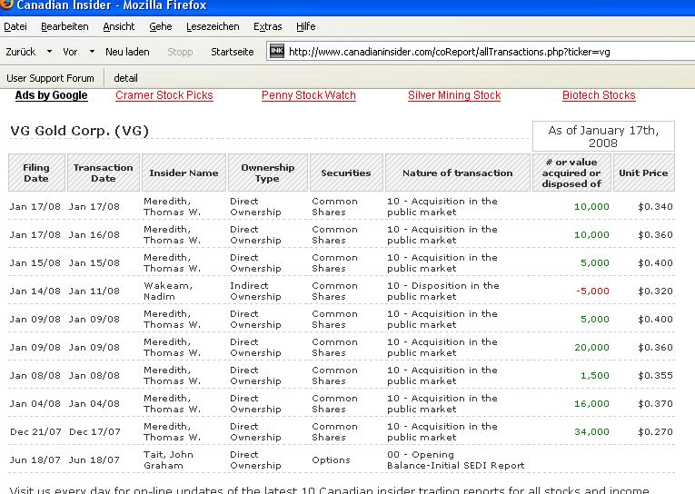 Goldpreis 1000 $ ./. Prod.-Kosten 500 $ Erlös= 500$ bei einer Anfangsproduktion (hoffentlich noch in diesem Jahr) von 50.000 Unzen= 25 Mio $ = 17,123 €, bei rund 80 Mio Shares von VG ergibt das einen Mehrwert von ca 0,21 €. Bei dieser sehr vorsichtigen Berechnung können wir also immerhin noch mit einer Verdoppelung des Kurses rechnen. Jede Unze Mehrproduktion gibt ein Sahnehäubchen oben drauf.