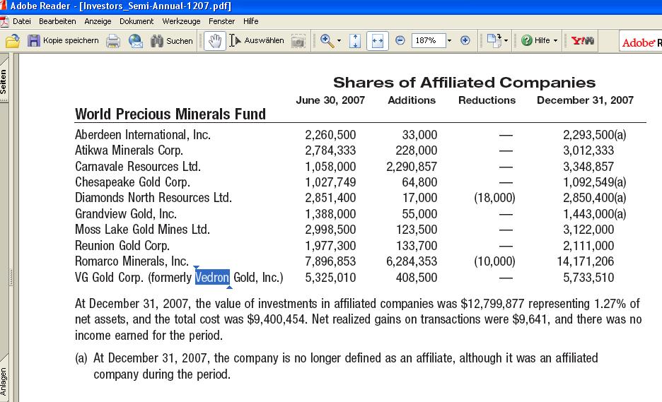 *§c) Die großen Rohstoffkonzerne verdienen derzeit prächtig und haben anscheinend wenig Interesse daran, neue (teure) Lagerstätten zu erschließen. Es ist damit zu rechnen, dass viele (nun extrem billige) Explorer von den großen Konzernen gekauft werden. Ob man jedoch diese Projekte „in Eile“ in Produktion führt, ist eher zu bezweifeln. Nach 20 Jahren Baisse und in der wirtschaftlichen Defensive, werden die großen Bergbaukonzerne ihre nun „offensive“ Stellung so lange wie möglich ausnutzen. Billige Ressourcen zukaufen dürfte zudem eher für den eigenen Aktienkurs förderlich sein, als Milliarden in die eigene Exploration zu stecken.