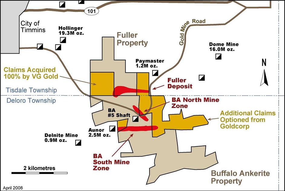 of both VG Gold's Buffalo Ankerite Property and Fuller Property. Also