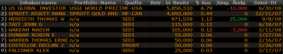 The most recent information about US Global on Bloomberg shows thye hold 5.8 million shares.