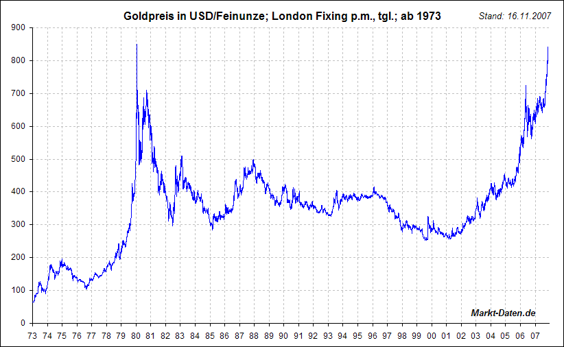 In den vergangenen 5.000 Jahren hat sich Gold einen festen Platz im Wertesystem der Menschheit erobert. Gold steht für Wohlstand, Wertbeständigkeit und Sicherheit. In den vergangenen Jahrhunderten gab es immer wieder Versuche, das Gold in seiner Funktion als Zahlungsmittel zu ersetzen. Ausnahmslos war das Ergebnis eine Finanzkatastrophe. Mal dauerte es nur wenige Jahre bis zum Exodus, mal konnte ein Papierwährungssystem mehrere Jahrzehnte überleben. Ohne Ausnahme fiel jedes dieser Finanzsysteme jedoch letztlich wieder auf einen Goldstandard zurück. Ich gehe davon aus, dass kaum jemand von Ihnen lebhafte Erinnerungen an die Hyperinflation der 1920er Jahre hat. Innerhalb von nur neun Jahren wurde das Fehlverhalten der Regierung, das beliebige Drucken von Geld, entlarvt. "Wir haben aus unserer Geschichte gelernt..." werden Sie denken. Schauen wir einmal auf die anderen geschichtlichen Erfahrungen, aus denen wir hätten lernen können. Nun, da waren im Jahr 1933 die USA, die den Besitz von Gold verboten. Die Weltwirtschaftskrise hatte die Staatsfinanzen des Landes aus dem Lot gebracht. Als Lösung wurde einfach sämtlicher Goldbesitz konfisziert. Es gab eine kurze Frist, in der das Gold gegen einen festgesetzten US-Dollarbetrag getauscht werden durfte. Für eine Unze Gold erhielt man genau 5 US-Dollar. Direkt nach Ablauf dieser Frist begann der Wert des Goldes zu steigen. Mit dem Gold des Volkes sanierte sich der US-Staatshaushalt binnen weniger Jahre. Dem Volk war es jedoch verboten, an dieser Wertsteigerung teilzuhaben, denn der Besitz von Gold war strafbar. 1944 brach schließlich das Finanzsystem der Engländer zusammen. Das britische Pfund hatte sich seit 1821 als Rückgrat des Weltfinanzsystems bewährt. Doch der Zweite Weltkrieg brachte auch die Finanzen der Briten außer Kontrolle. Auf einer Konferenz in Bretton Woods boten sich die US-Amerikaner an, mit dem US-Dollar die Rolle des britischen Pfunds zu ersetzen. Die USA verpflichteten sich, für jede 35 US-Dollar genau eine Unze Gold vorzuhalten. Von 1933 bis 1944, also in nur elf Jahren, hatte sich der Wert des Goldes von 5 US-Dollar auf 35 US-Dollar versiebenfacht. Auf dem Abkommen von Bretton Woods basiert bis zum heutigen Tage unser Weltfinanzsystem. Es gibt da allerdings eine klitzekleine Änderung, die Präsident Nixon im Jahr 1971 vorgenommen hat: Er hob das Versprechen auf, US-Dollar in Gold umzutauschen. Unser Weltfinanzsystem entbehrt somit heute jeglicher Basis. Es handelt sich um ein Papiergeldsystem, das allein auf dem Versprechen von ... ja, von wem denn eigentlich basiert? ... Und welches Versprechen? Nach der Aufhebung des Goldeinlöseversprechens ist der Preis für die Feinunze Gold, der in den Jahren des Wirtschaftswunders konstant bei 35 US-Dollar festgeschrieben war, bis 1980 auf 850 US-Dollar angestiegen. Das ist der vierundzwanzigfache Wert nach nur neun Jahren US-Dollar ohne Goldbindung. Fazit: In Deutschland führte die Aufhebung der Goldbindung der Währung binnen neun Jahren zu einer Hyper-inflation. In den USA versiebenfachte sich der Wert des Goldes innerhalb von elf Jahren nach 1933 und vervierundzwanzigfachte sich nach Aufhebung der Goldbindung 1971 in nur neun Jahren. Nach den hier aufgeführten Beispielen wissen Sie nun, das eine Verdopplung in einer Goldhausse nur der Anfang ist. Wie stark der Goldpreis steigen kann haben die Beispiele aus der Geschichte gezeigt. Derzeit notiert das Gold auf 28-Jahres-Höchstkursen, und uns wird vorgegaukelt, dass wir keine Inflation haben. Die Inflation an den Rohstoffmärkten ist nicht mehr zu leugnen. Schauen Sie sich die Entwicklung des Rohstoffindexes CRB in den vergangenen Jahren an. Der Wert hat sich mehr als verdoppelt. Dank einer künstlich niedrig gehaltenen chinesischen Währung werden die teuren Rohstoffe heute so günstig verarbeitet, dass die fertigen Produkte immer billiger werden. Das funktioniert jedoch nur so lange, wie Chinesen mit 200 Euro Arbeitslohn pro Monat bei einer 7-Tage-Woche à 60 Stunden zufrieden sind. China hat schon einen ersten Schritt unternommen, den Renmimbi vom US-Dollar abzukoppeln. Das heutige Lohnniveau wird sich nicht mehr halten lassen, und weltweit werden dann auch die Endprodukte im Preis steigen. Mit anderen Worten: Es ist nicht die Frage, ob wir eine verstärkte Inflation bekommen, sondern nur wann. Ich möchte Ihnen nicht den Idealismus nehmen, dass Sie glauben, der Mensch hätte aus seiner Geschichte gelernt. Ich meine jedoch, dass der Mensch lediglich gelernt hat, die gleichen Ergebnisse mit immer komplexeren Systemen zu erzielen. Allerdings brauchen Sie nicht panisch Ihre Aktienbestände zu verkaufen, denn Aktien verbriefen Anteile an Unter-nehmen. Die Unternehmen stellen reale Werte. Wenn Währungen entwertet werden, dann steigt der Papierwert von Unternehmen entsprechend der Währungsentwertung. Mit Aktien sind Sie also ebenfalls gut gegen eine Inflation abgesichert. Hier gilt es dann nur zu beachten, welche Unternehmen bei Inflation besser und welche schlechter wirtschaften. Der US-Dollar ist die Verrechnungseinheit für die meisten Rohstoffe. Es ist also davon auszugehen, dass der Wert des US-Dollar nicht allein von den US-Amerikanern manipuliert werden kann. Die USA können aber die Menge der im Umlauf befindlichen US-Dollar beeinflussen. Seit Präsident Nixon 1971 das Versprechen aufgehoben hat, je 35 US-Dollar gegen eine Unze Gold einzutauschen, fanden zwei Entwicklungen statt: Zum einen hat sich der Goldpreis je Unze bis heute auf 500 US-Dollar vervierzehnfacht. Gleichzeitig ist die Golddeckung, die 1971 noch 1:1 betrug, auf 1:2 gefallen. Dies bedeutet, dass nur die Hälfte der im Umlauf befindlichen US-Dollar durch Goldvorräte der USA gedeckt sind. Wenn Sie diese beiden Fakten zusammenrechnen, dann ist der US-Dollar heute nur noch ein Achtundzwanzigstel dessen wert, was er 1971 wert war. Mit anderen Worten: Heute ist 28-mal so viel Geld im Umlauf wie 1971. Ein Teil des Geldmengenwachstums ist durch das 