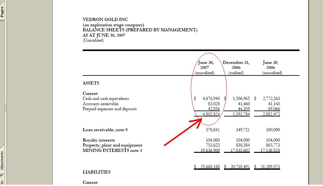 at December 31, 2006 to $4,676,940 as at June 30, 2007.