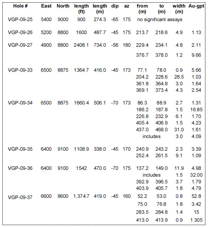 8. Dezember 2009, Toronto, Ontario, Kanada. VG Gold Corp. (TSX: VG; FWB: