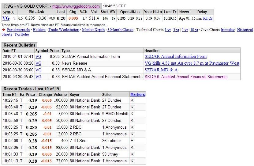 December 8, 2009, Toronto, Ontario, Canada VG Gold Corp., (TSX: