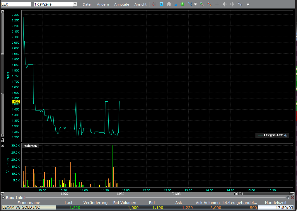 | 8 | 51 | Lexam VG Gold (WKN A1H396 ) Faktensammlung | harry74nrw | louisaner | 25.04.21 01:57 | |