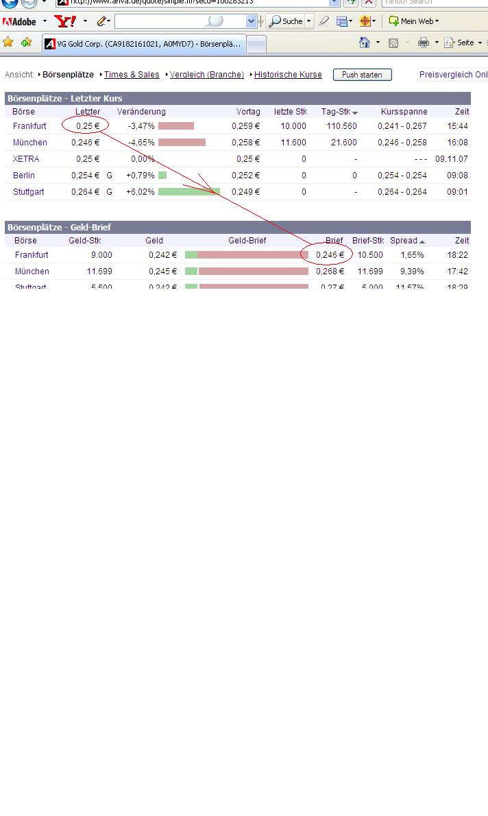 Also der Bilanzkurs oder innerer Wert liegt irgendwo zwischen 46 und 55CAD, wie gesagt bei, nach kaufmännisch richtiger Unterbewertung des Vermögens, 800k Unzen und 25CAD pro Unze. Das Vorsichtsprinzip ist nicht bindend für die Amis und Cans! Üblich ist da nur "fair value", also VG könnte sagen Goldpreis liegt nächstes Jahr bei 900CAD minus 450CAD Kosten pro Unze und 1Mio Unzen Resourcen. Ein deutscher Kaufmann muss sich arm rechnen, ein amerikanischer darf sagen "that´s fair".