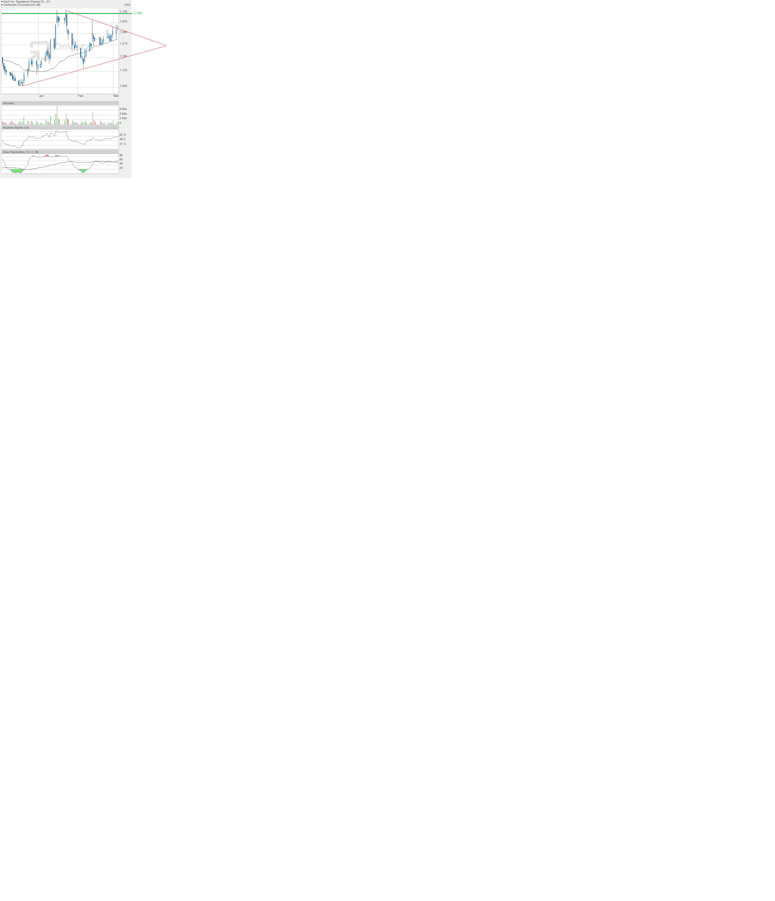Im Endeffekt verläuft der Chart weiter nach Plan. Das erste Ziel ist abgearbeitet, das nächste liegt bekanntlich bei 1,74$. Das ist die Schlüsselmarke.