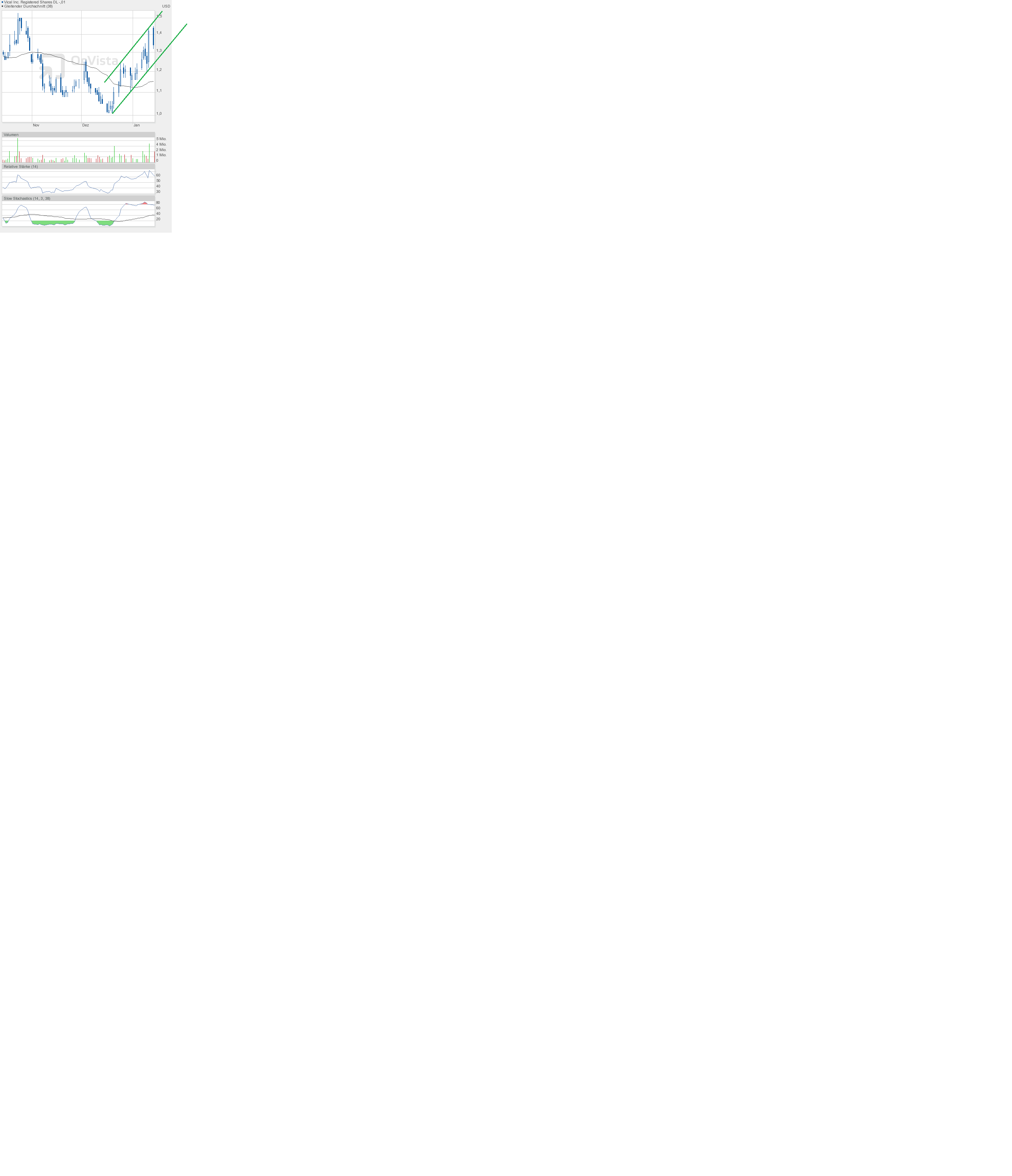 Das Ziel 1,40$ wurde nun mehr als abgearbeitet. Nun zählt die nächste Zielmarke 1,50$/1,53$. Mal sehen, ob die schon nächste Woche erreicht werden kann. Es klingt vielleicht blöd, aber ich hoffe nicht. Denn der Aufwärtstrendkanal müsste nach oben verlassen werden, dies käme wohl einer Übertreibung gleich. Die Kursgewinne würden infolge dessen schnell wieder abgegeben. Oder ein neuerliches Fehlsignal könnte gebildet werden, was zu einer neuen Korrektur führen würde. So wäre eine neue Seitwärtsphase mein gewünschtes Szenario.