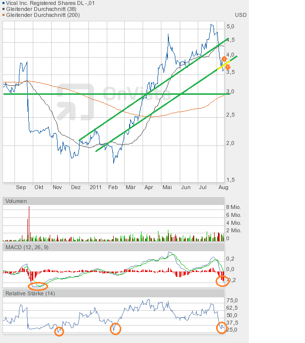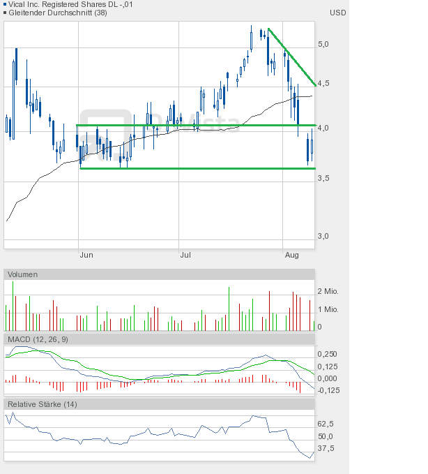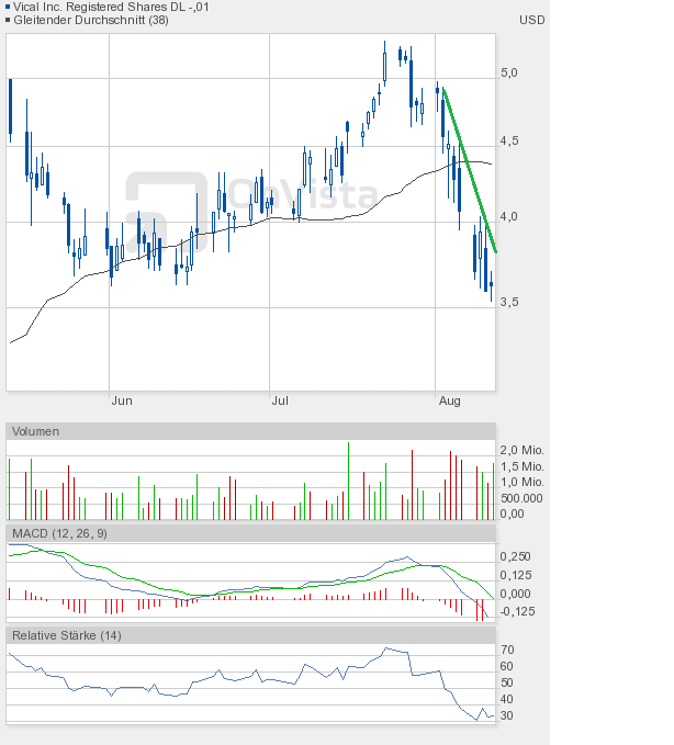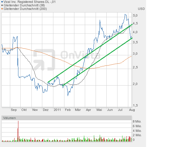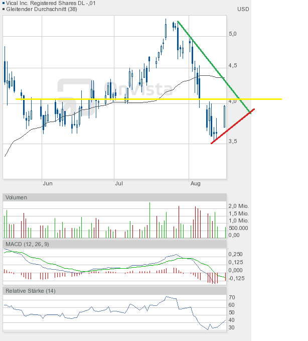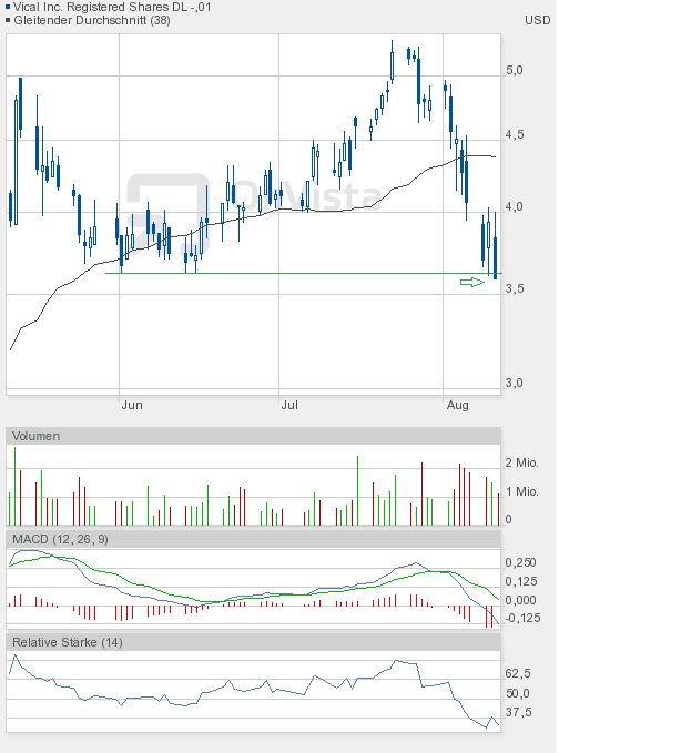 Zu Vical kann ich heute nur sagen "3,60$ - Die Vierte". Die im Juni gebildete Dreifachunterstützung wurde nun zum vierten Mal angelaufen - und sie hat gehalten. Obwohl die Märkte zum Ende noch einmal die Kursverluste ausbauten. Das muss kein gutes Zeichen sein - es kann aber.