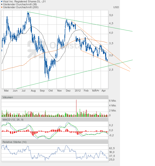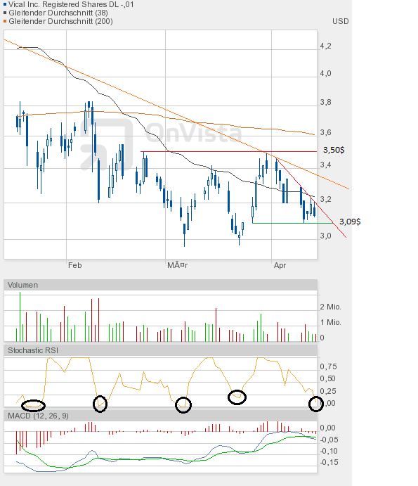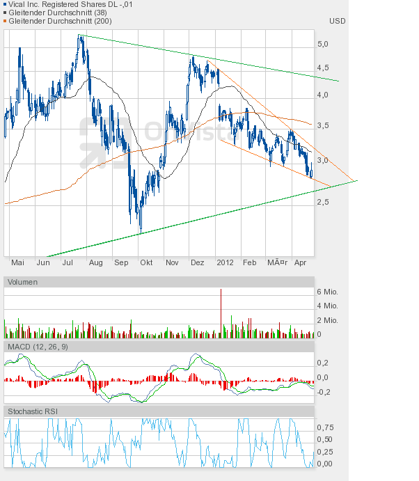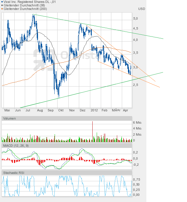 Umso erstaunlicher, dass Vical heute mehr zulegen konnte, als man gestern verloren hatte. Schlusskurs 3,34$ auf Tageshoch, +4,5%. Ein durchaus wichtiger Kursgewinn, denn die Untertassen-Formation, den Doppelboden, und den Morning Star in Frage stellen zu wollen, darauf können wir alle gern verzichten.