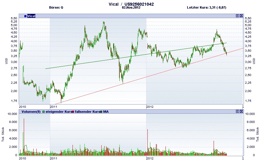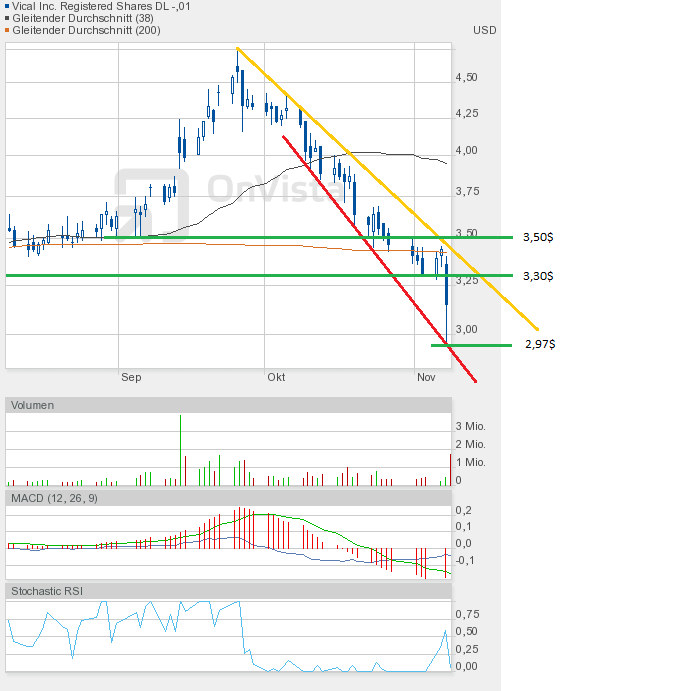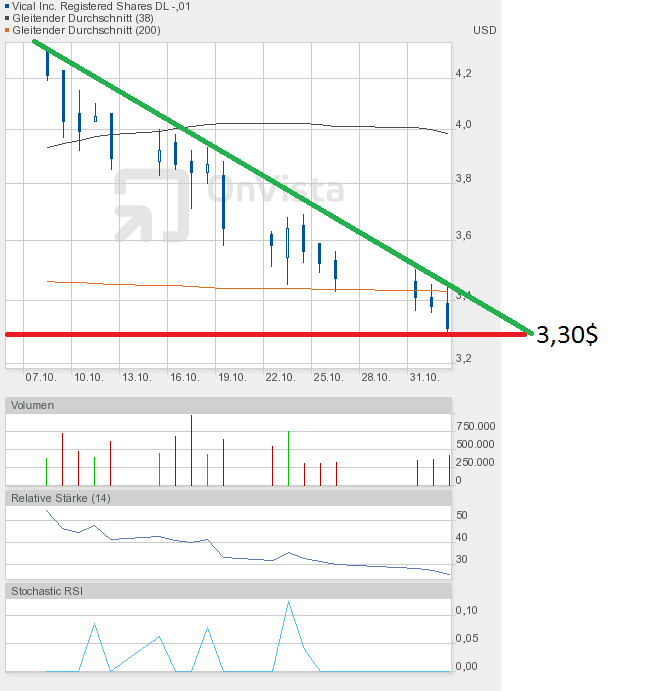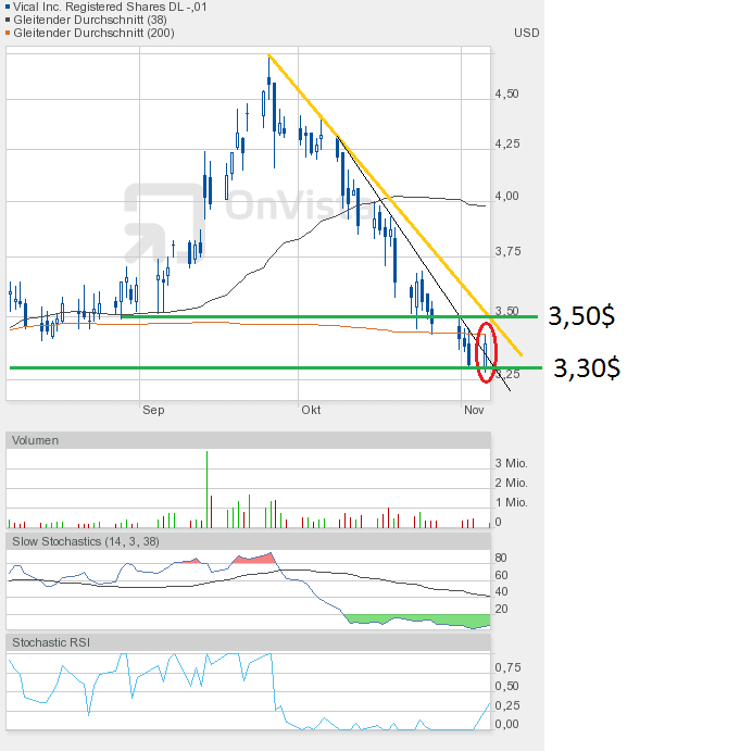 Da hat es gestern aber mal ordentlich gerappelt. Bis auf 2,97$ ging es nach unten. Bis zum Handelsende konnte sich die Aktie zwar bis 3,15$ nochmal deutlich erholen, womit die 3-Dollar-Marke gehalten hat, trotzdem ist der schöne 2jährige Aufwärtstrend im Eimer.