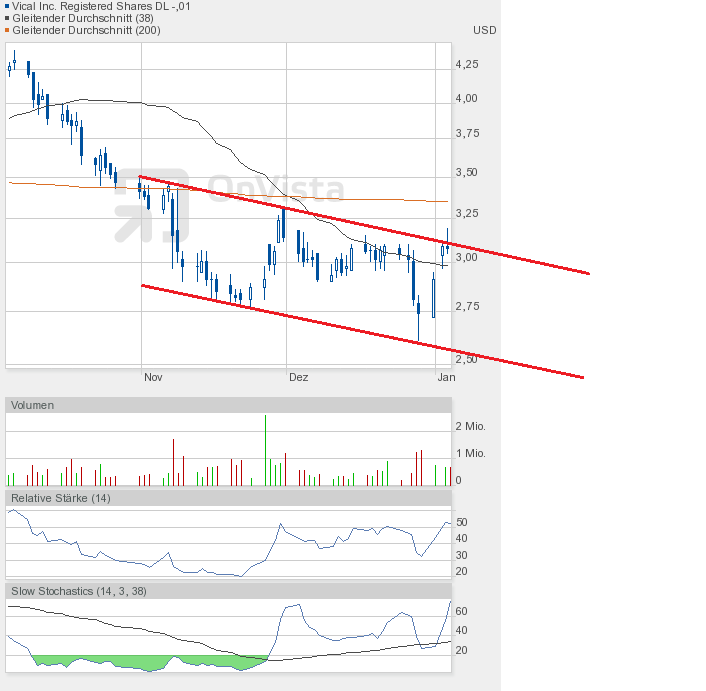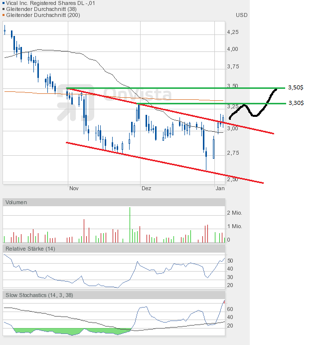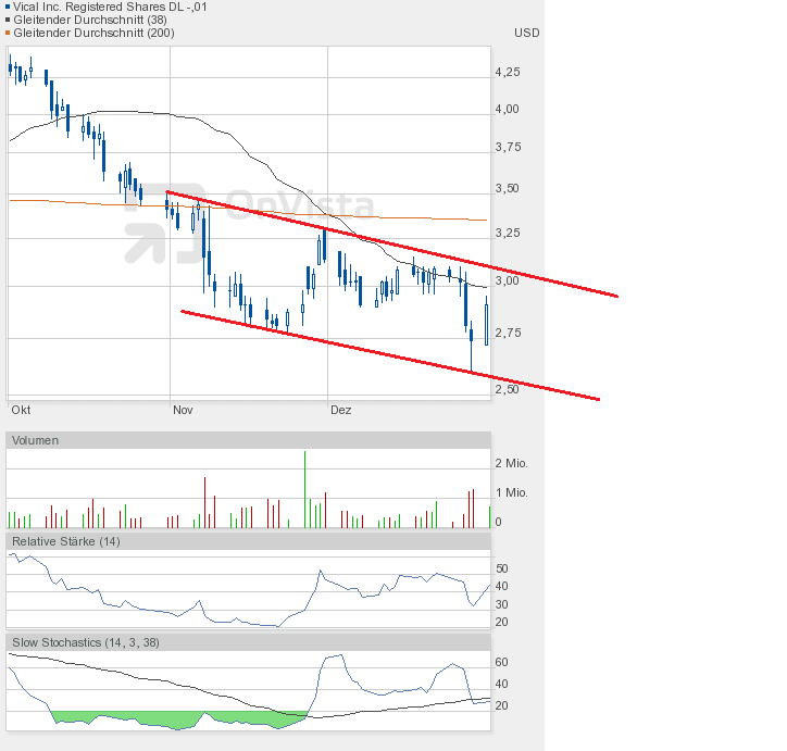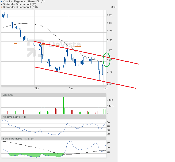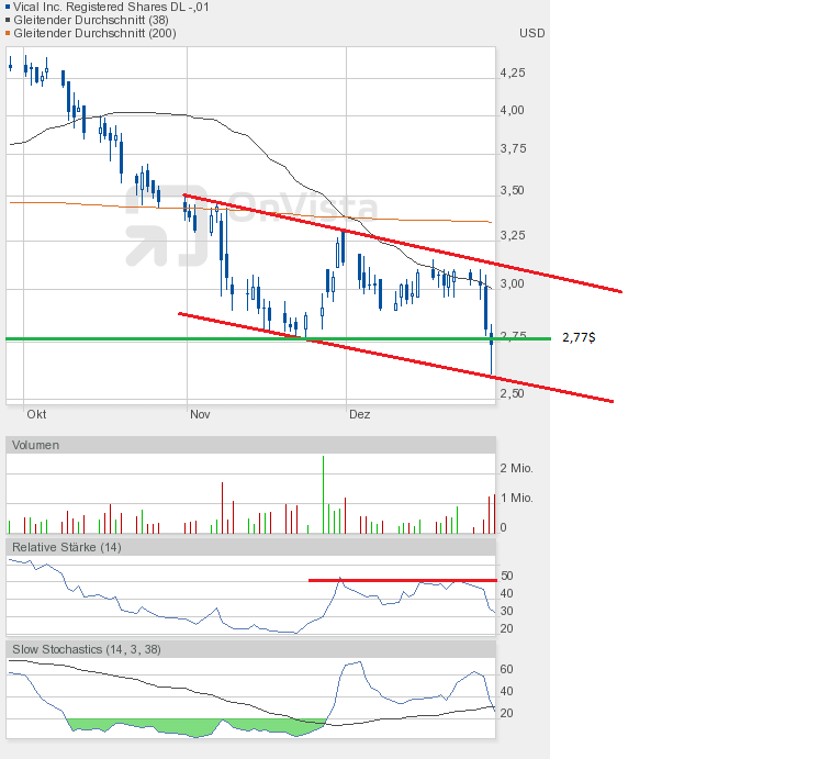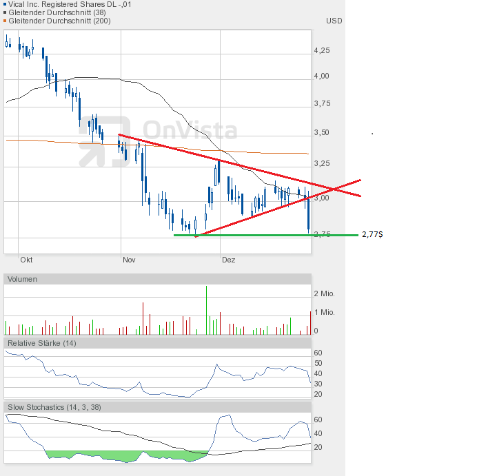 Und die Dramatik nimmt kein Ende. Mit dem Tagestief von 2,78$ kam Vical dem Jahrestief von 2,77$ bedrohlich nah. Und sollte das Tief unterboten werden, dann geht hier erst einmal das Licht aus.