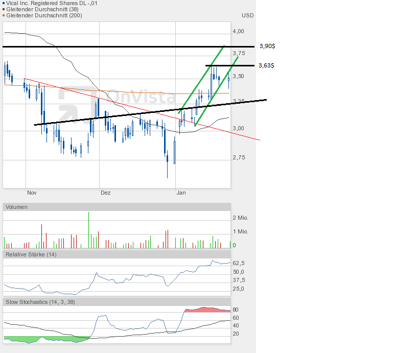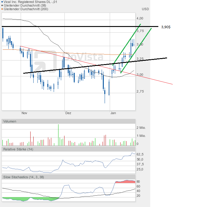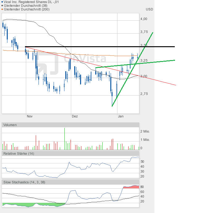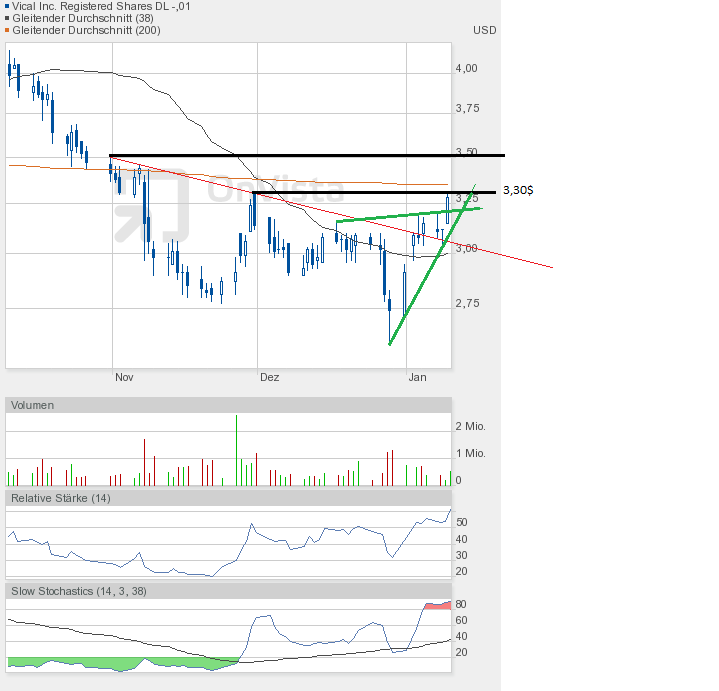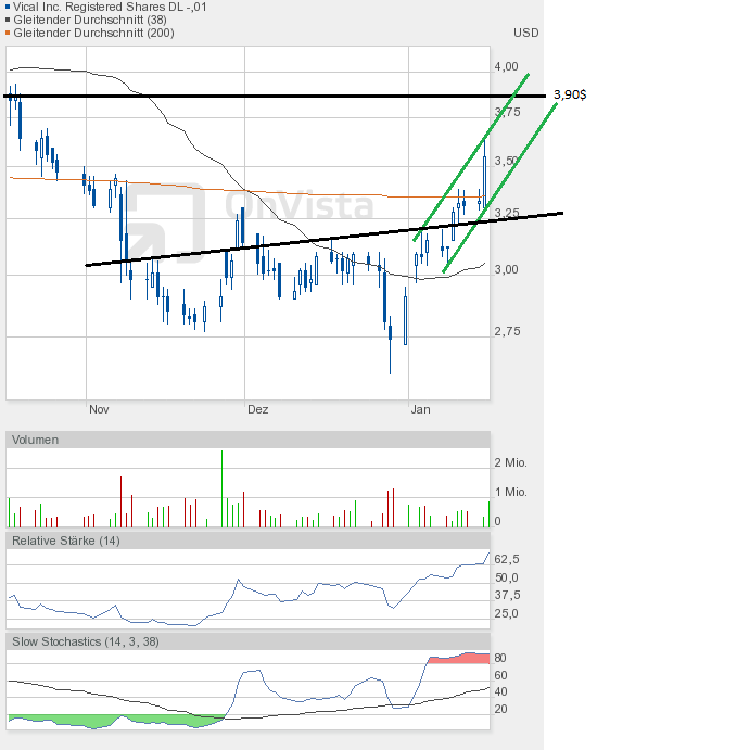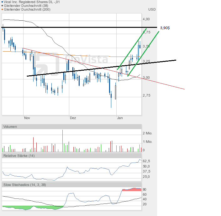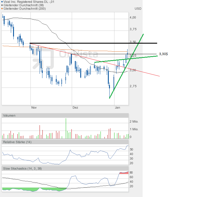 Und die Dramatik nimmt kein Ende. Mit dem Tagestief von 2,78$ kam Vical dem Jahrestief von 2,77$ bedrohlich nah. Und sollte das Tief unterboten werden, dann geht hier erst einmal das Licht aus.
