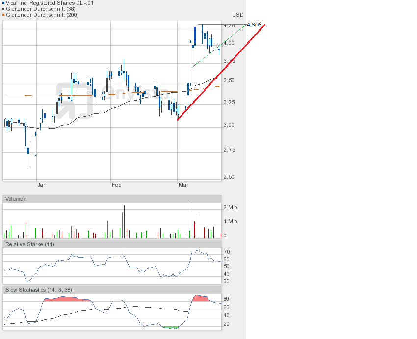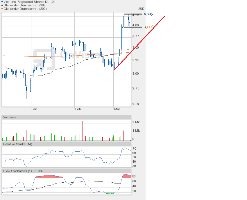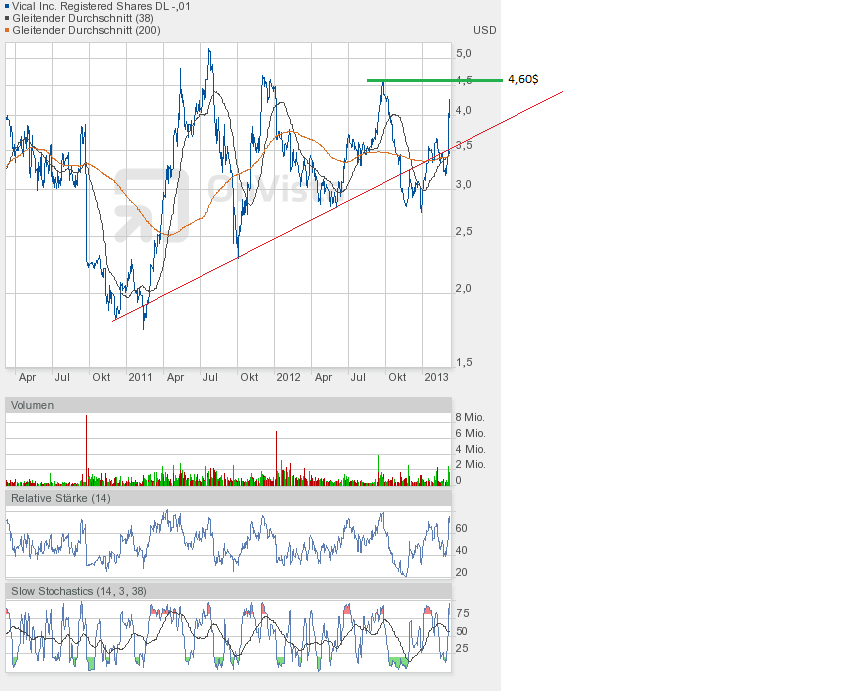 Meine 4,60$-Wette zum Quartalsende von Dezember 2012 habe ich leider verloren. Dennoch war mein großer Optimismus nicht verkehrt. Vical erholte sich von 2,61$ bis auf 4,30$.