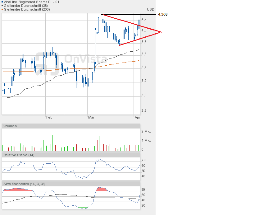 Es bleiben zwei Marken wichtig. Oben 4,30$, unten 3,78$.