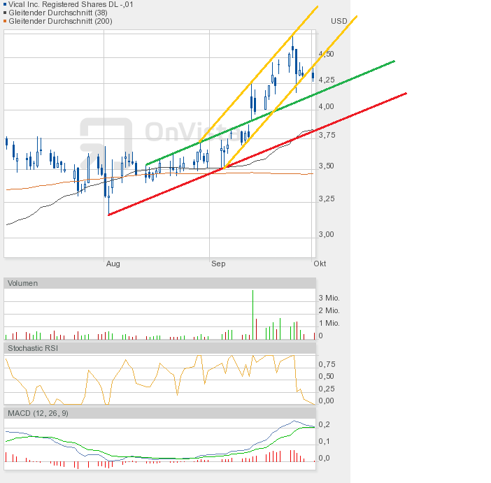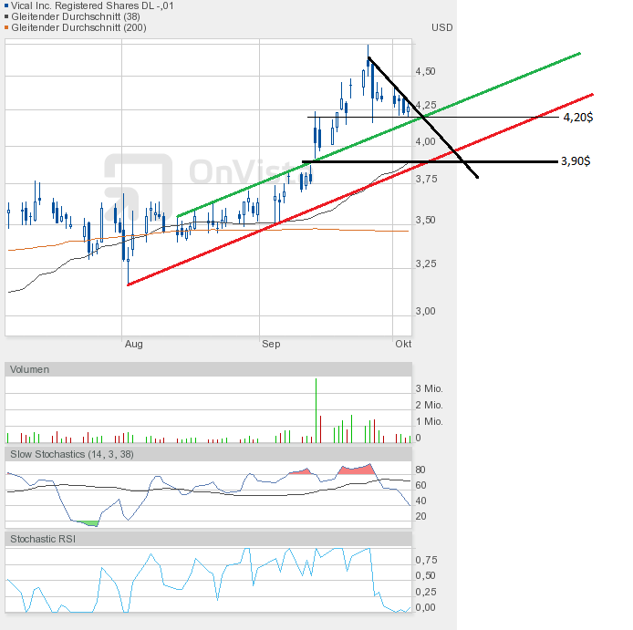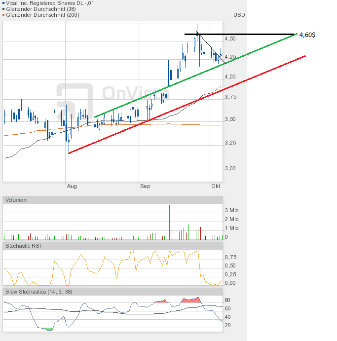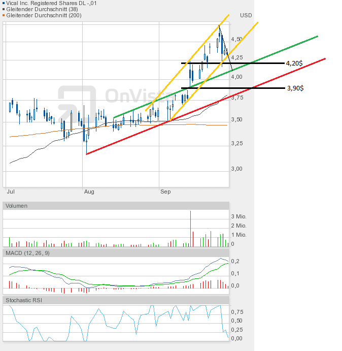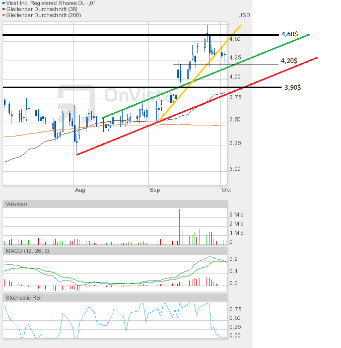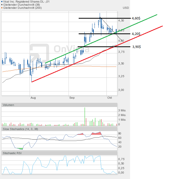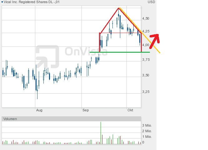 Glaube Vical darf nicht zu sehr Charttechnisch betrachtet werden, dieser Titel hängt extrem an den Gesammtmärkten und reagiert immer stark auf Veränderungen, sprich: wenn heute miese Stimmung an den Märkten herrscht, so nimmt Vical diese gerne auf und die Bären schlagen deutlich zu. Nach den gestrigen negativen Zahlen von Alcoa gehe ich davon aus, dass auch weitere Schwergewichte ihre Federn lassen mussten im letzten Quartal. Dies wird sich wiederum negativ auf unsere Vical-Bewertung auswirken, hoffe jedoch dass uns der Reebound mit guten Meldungen durch Allovectin7 gelingt und wir die 5$ in Reichweite kriegen!