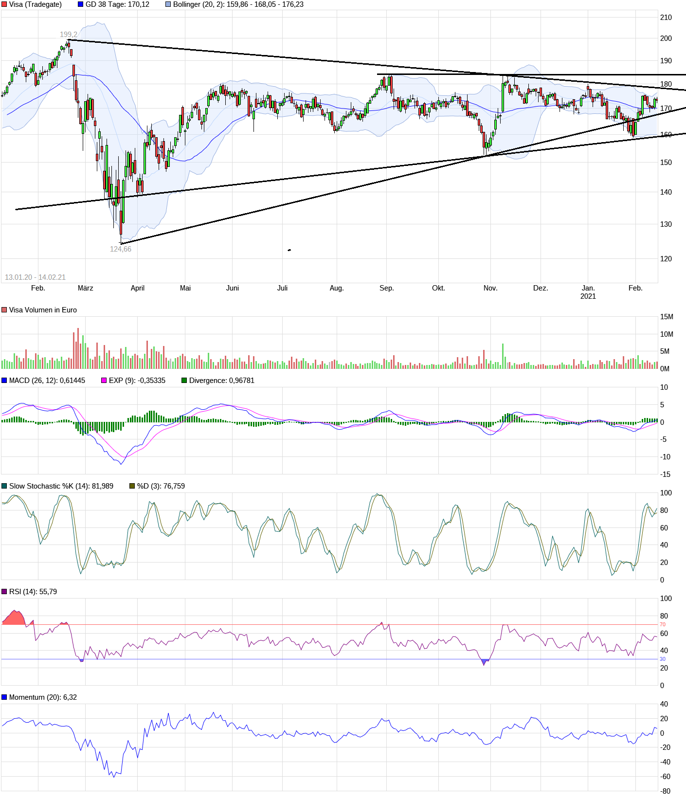 Das grenzübergreifende Transaktionsvolumen ging im Quartal, das am 31. Dezember endete, bei konstanten Dollar-Kursen im Vorjahresvergleich um 21 Prozent zurück, wofür Visa die Reisebeschränkungen aufgrund der Corona-Pandemie verantwortlich machte. Zuwächse beim Umsatz im Online-Handel und bei Debitkarten hätten dies zum Teil kompensiert.