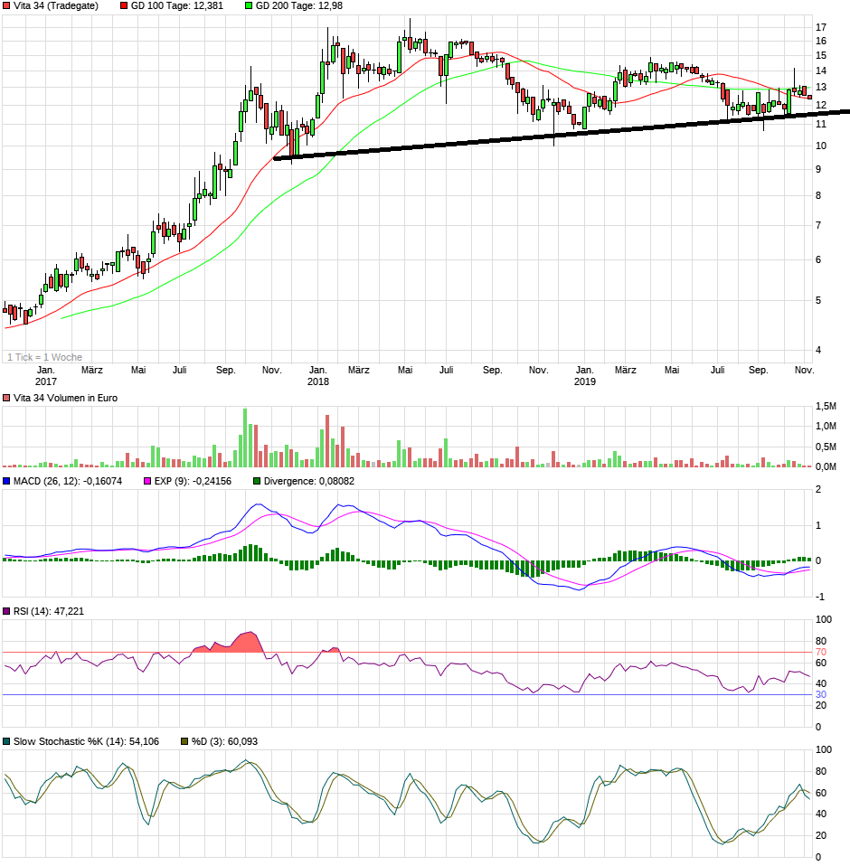 Vita 34 ist eine von den Aktien, die man in einem Unterordner abspeichert und nicht täglich anschauen sollte. Ist eine langweilige, sichere Anlage würde ich sagen. Nach unten hin gesichert, weil Leute, die für Einlagerungen zahlen, diese nicht einfach abbrechen wollen - dann wäre alles für die Katz gewesen.
