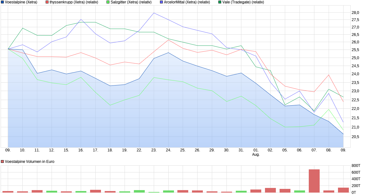 Voestalpine knallt runter, das ist schon beinah so ein Abschwung wie bei der Finanzkrise.